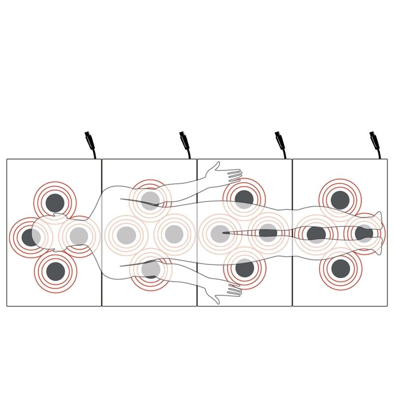 La versión “extra power” del colchón total body, está compuesto por cuatro secciones activas que contienen un total de 16 solenoides.